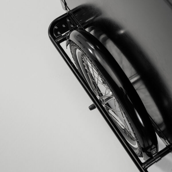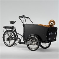 En riktig favorit bland våra fyrfota vänner. Elcykelns låda är öppningsbar framtill vilket gör att till exempel hunden enkelt kan hoppa in i lådan på egen hand. Lådan är även utrustad med en bänk som antingen kan fungera som sittbänk för upp till två bältade barn eller som praktiskt förvaringslåda.