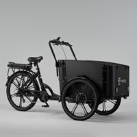 Du känner igen designen på ram, frontlåda och hjul från vår modell Cargobike DeLight. Men till skillnad från vår DeLight, finner du här en 45Nm motor monterad i bakhjulet och batteriet sitter i den bakre pakethållaren.