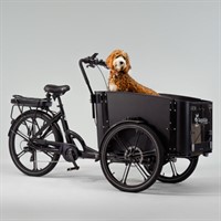 Flex Dog är cykeln för dig som vill ha med dig din fyrbenta vän på färden. Den transparenta luckan fram på den mjukt rundade lådan fälls enkelt åt sidan. Din hund hoppar smidigt in själv och sätter sig tillrätta.
