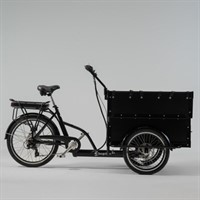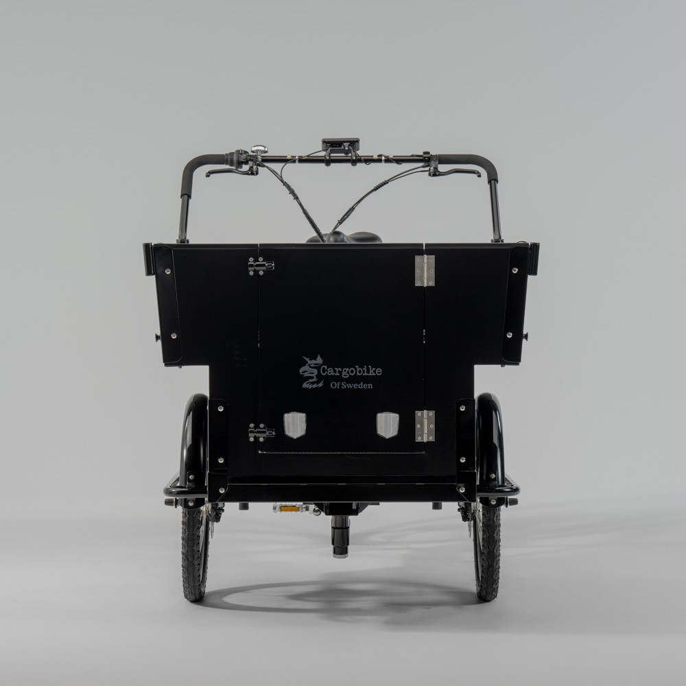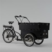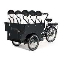 Det här är en praktisk lådcykel för dig som vill transportera många barn, massor av prylar eller rejält med utrustning. Lådan är byggd över hjulen och erbjuder därmed det största lastutrymmet bland våra modeller. Upp till sex barn sitter säkert med hjälp av trepunktsbälten på två parallella bänkar och lådans front är öppningsbar så att barnen själv kan ta plats i lådan.