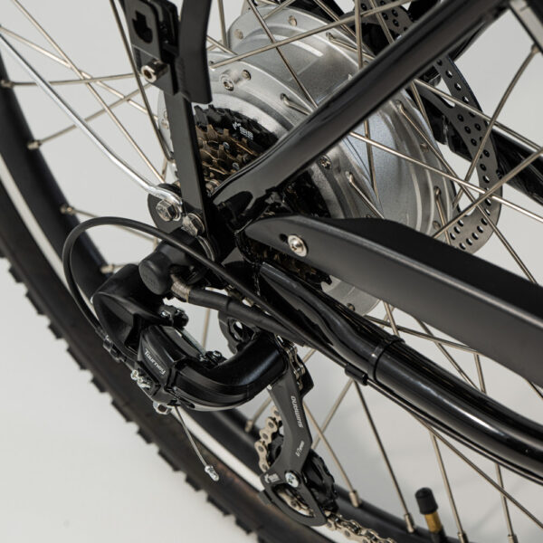 Cykeln har hydrauliska skivbromsar såväl fram som bak och 6 utanpåliggande växlar av märket Shimano. Belysning fram och bak samt säkerhetsbälte för 6 barn är inkluderat.