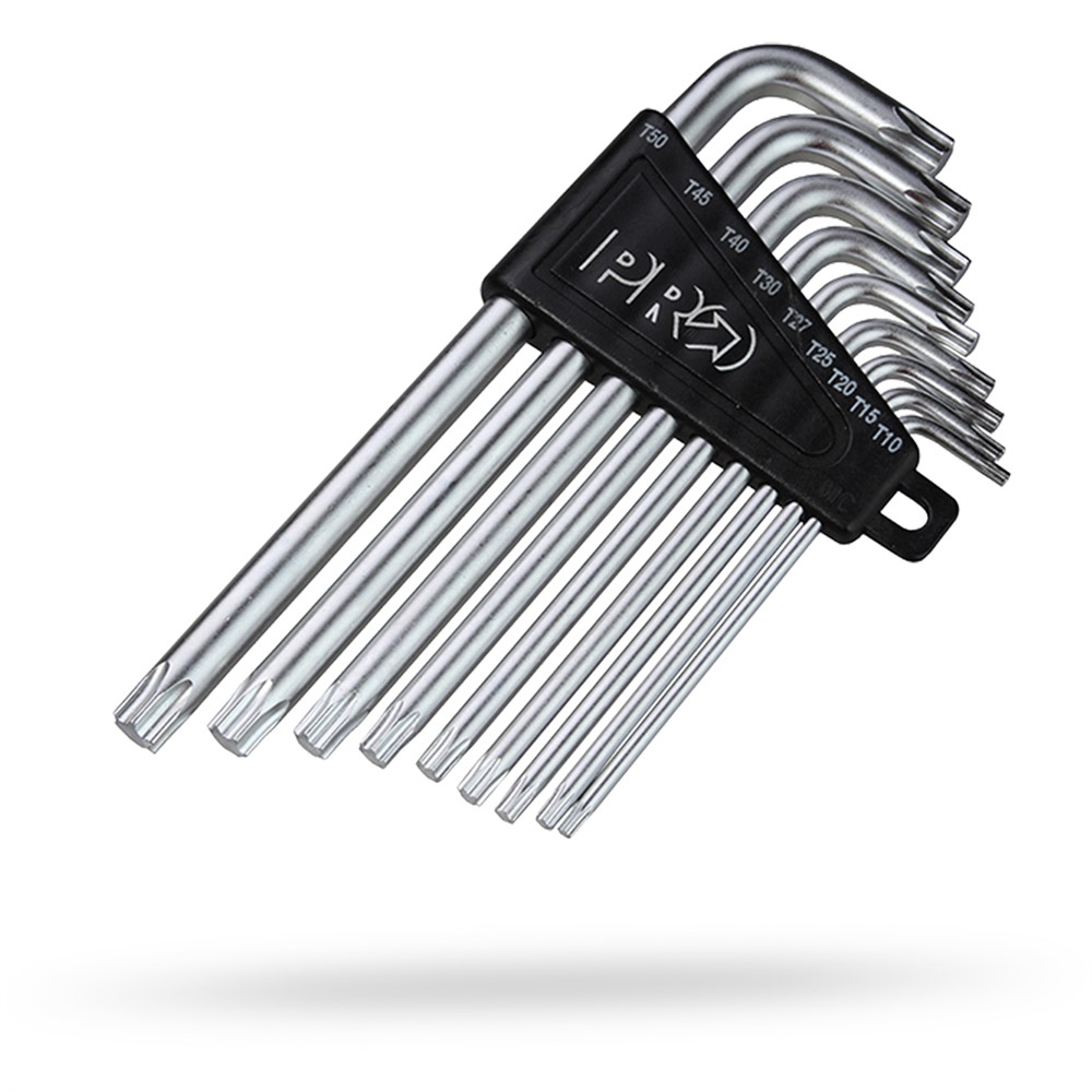 Ingår i uppsättningen är T10, T15, T20, T25, T30, T40, T45 och T50 Torx-nycklar.
