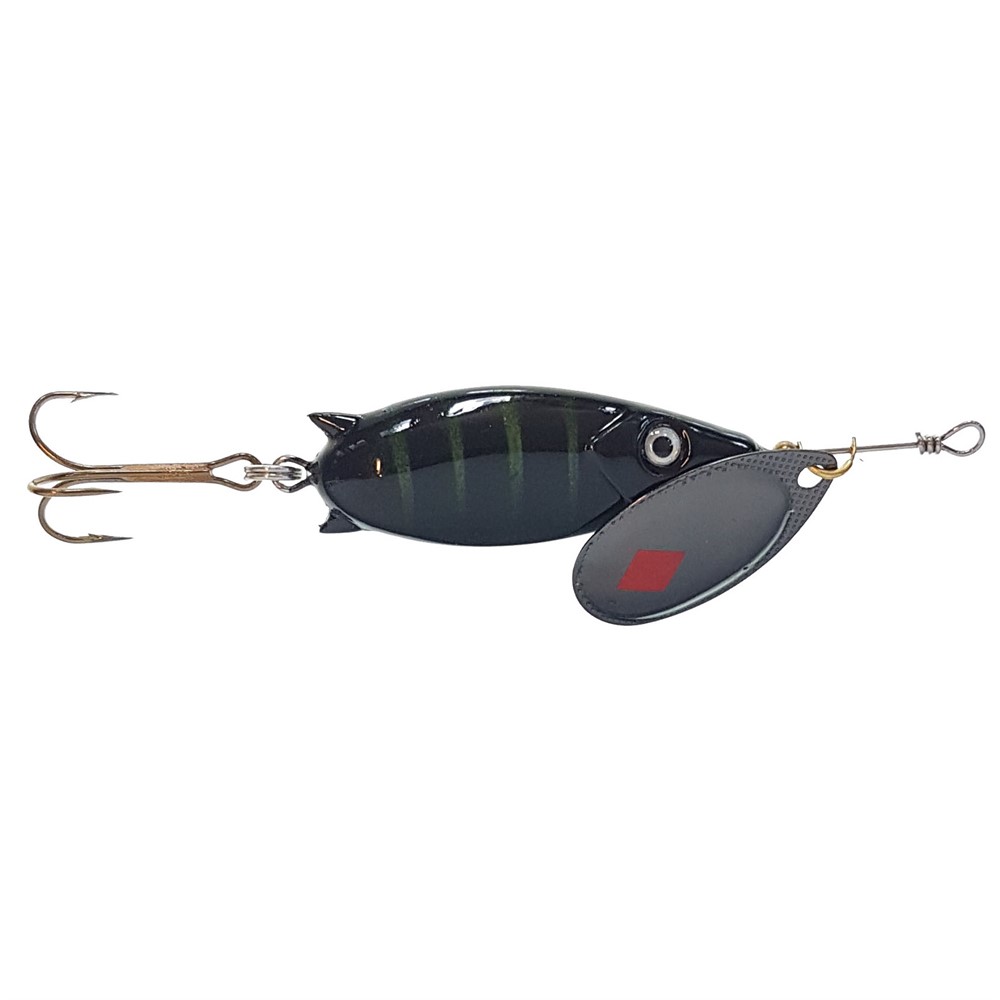 Denna extremt långkastande spinnare använder du både i stilla och strömmande vatten. Tack vare kroppens form så motverkar den att linan tvinnar sig. De 3-d realistiska ögonen förhöjer betets attraktionskraft på rovfisken. Den kan helt enkelt inte motstå denna läckerbit. De vassa krokarna från BKK ger en säker krokning.