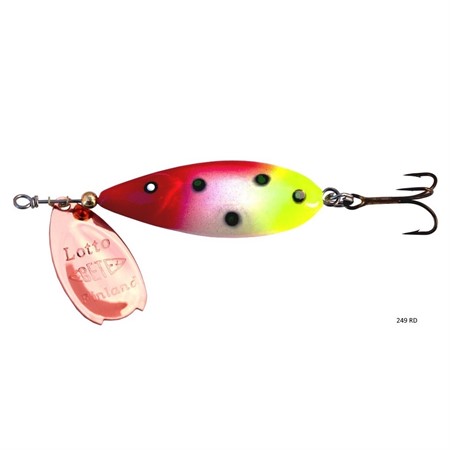 Lottospinnaren är lättkastad och den viktade kroppen gör att man kommer ner till fisken även i strömmande vatten. Lottospinnaren är en favorit för många öringfiskare men den fungerar lika bra för annat fiske efter t.ex. abborre etc.