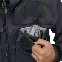 Patagonias ikoniska SST jacka kommer här i en ny uppgraderad version med alla bekvämligheter du kan önska dig på en vadarjacka. Vadarjackan har stående platta bröstfickor, stor ficka i ryggen, integrerad huva med enkel dragjustering och Reverse StretchCoat armslut för att hålla armarna torra. SST är skuren högt för djupvadning och erbjuder dubbla bälteslingor för extra säkerhet.