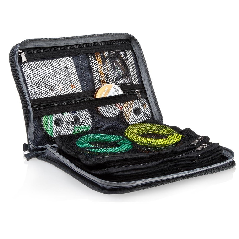 I tillägg till de 20 fickorna, finns även ett antal mindre meshfickor med dragkedja på insidan av etuiet. Dessa är avsedda för förvaring av tafsar, extra spetsar och andra små tillbehör.