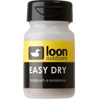 A treatment to revive flies composed of two things: drying beads and blue indicator crystals. A fly (still attached to the leader) is dry after a few quick shakes and ready for floatant. The blue indicator beads turn pink when the drying beads have become saturated and it is time to get a new bottle of Easy Dry.