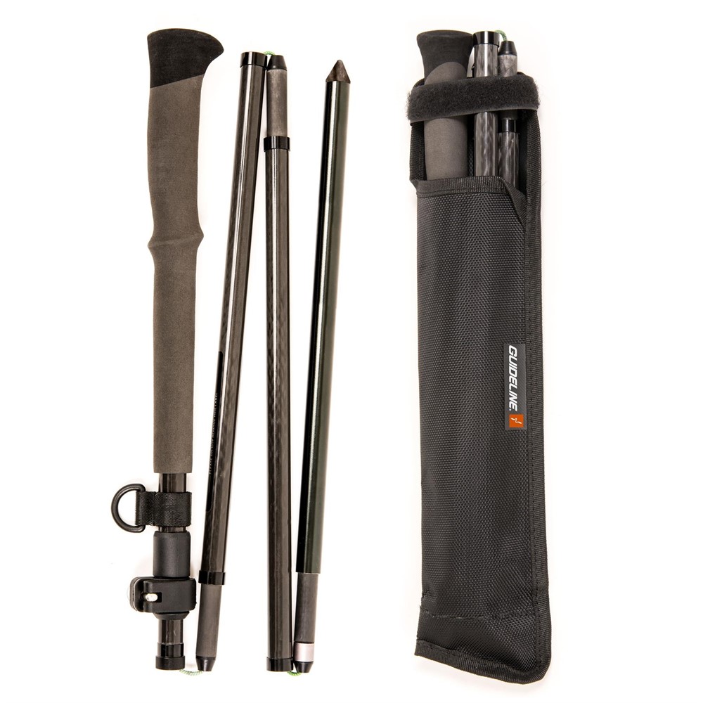 Kompakt fällbar vadarstav som är lätt men stabil och tillverkad av styv grafit med en tålig nedre sektion av aluminium samt en hård spets av tungsten. Staven är 36 centimeter lång ihopfälld när den förvaras i det medföljande fodralet. Helt utfälld mäter den 147 centimeter och är försedd med två olika låsanordningar för maximal säkerhet vid svår vadning. I övre änden sitter ett greppvänligt handtag av EVA med två olika greppytor som låter dig hitta ett perfekt läge för din hand. Den undre är rund medan den övre delen är formad efter en hand på samma sätt som en skidstav.