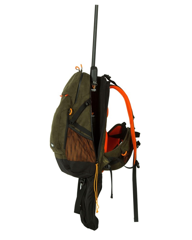 Vapnet sitter stabilt på ryggsäcken och kan tas fram och sättas tillbaka utan att man behöver ta av säcken från ryggen. Bärremmarna är utformade med tanke på skytte. Höftbältet är mycket stabilt och ger en god viktöverföring till höfterna. Dessutom har säcken praktiska fickor för småsaker och möjlighet till infästning av hund.
