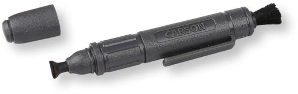Rengöringspenna som innehåller Carsons Dry Nano-Particle Cleaning Formula som effektivt borstar bort smuts och fingeravtryck från spegelfria kameraliner! På ena sidan är pennan försedd med en borste som lätt borstar bort smuts, damm och partiklar. Dess andra sida har en sugkopp för polering och djupare rengöring.