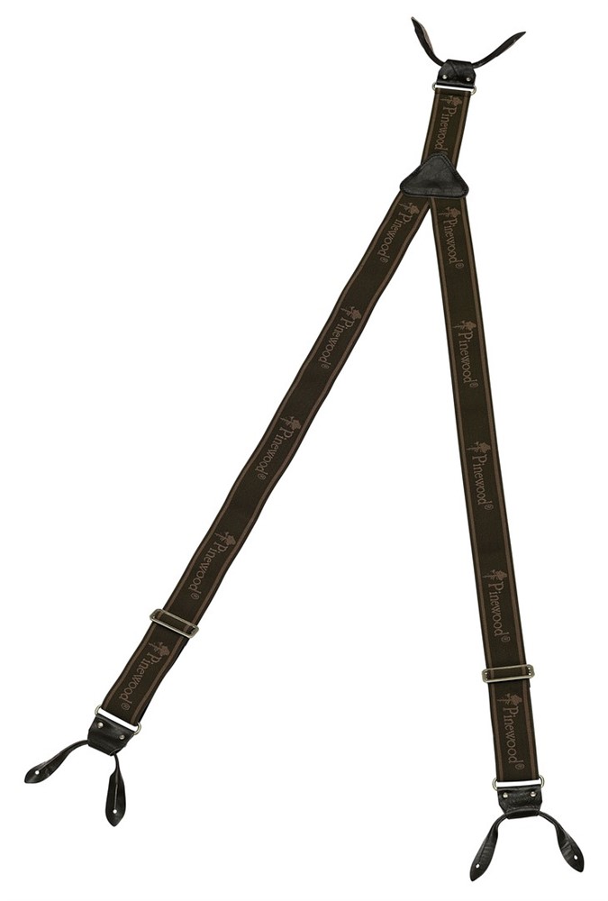 Bred hängsle med läderkors i ryggen. Fästes med läderstroppar. Passar jaktbyxor med knappar för hängsle.