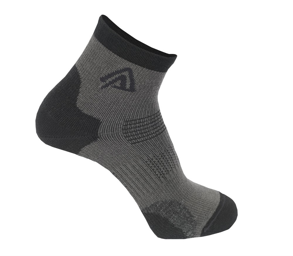 Running socks är en perfekt strumpa för utomhusträningen. Kombinationen av ett högt ull-innehåll, polyamid och elastan gör strumporna stretchiga och följsamma på foten med fina ventilerande egenskaper. Förstärkningar på utsatta ställen och elastisk ribbstickning längst upp för att hålla strumporna på plats. Sydda med minimala sömmar för att minimera risken för skav.