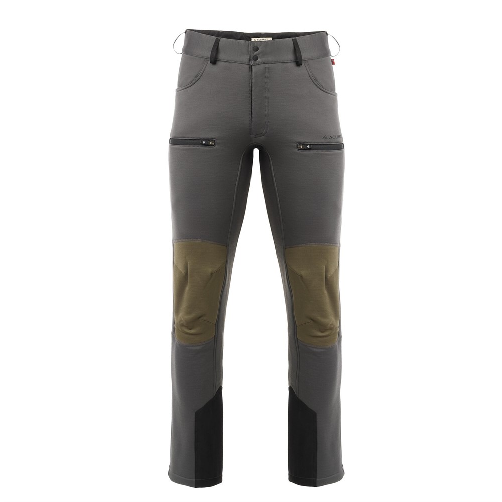 Woolshell Pants är en byxa med två praktiska sidofickor med dragkedjestängning, dragkedja i fronten, hällor för bälte och förstärkningar runt anklarna. Byxan är tillverkad i vårt stretchiga och sköna WoolShell-material som är stickat och borstat med ett extra lager på utsidan för att förbättra slitstyrkan och bättre skydda mot väder och vind. Byxan fungerar för sig själv när vädret tillåter med en skön borstat insida mot huden eller som ett mellanlager när det är kallt.