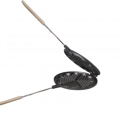 Våffeljärn i gjutjärn med skaft.
