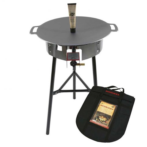 Muurikka SET 48 cm är ett komplett set som innehåller det du behöver för att komma igång med din matlagning utomhus. Stekhällen kan användas över grillen, öppen eld eller tillsammans med medföljande gasolbrännare. En regulator med tillhörande slang som har ett invändigt mått om minst 10 mm behövs, det medföljer ej. Rekommenderat tillbehör är Muurikka Lock 44 cm.