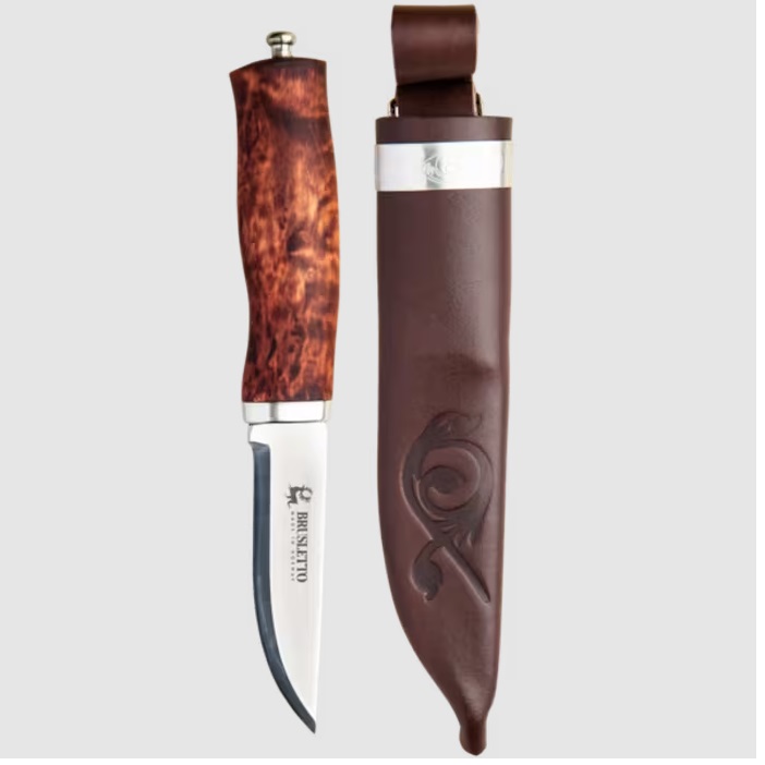 Brusletto Norgeskniven är en traditionell täljkniv som kan användas till det mesta. Den har ett brett, rakslipat blad med längd på 9,3 cm. Holk och knapp är i nysilver och slidan är i färgat oxläder med säkerhetsinlägg och låsstropp. Bladet är gjort av rostfritt knivstål och skaftet är gjort av oljad flambjörk.