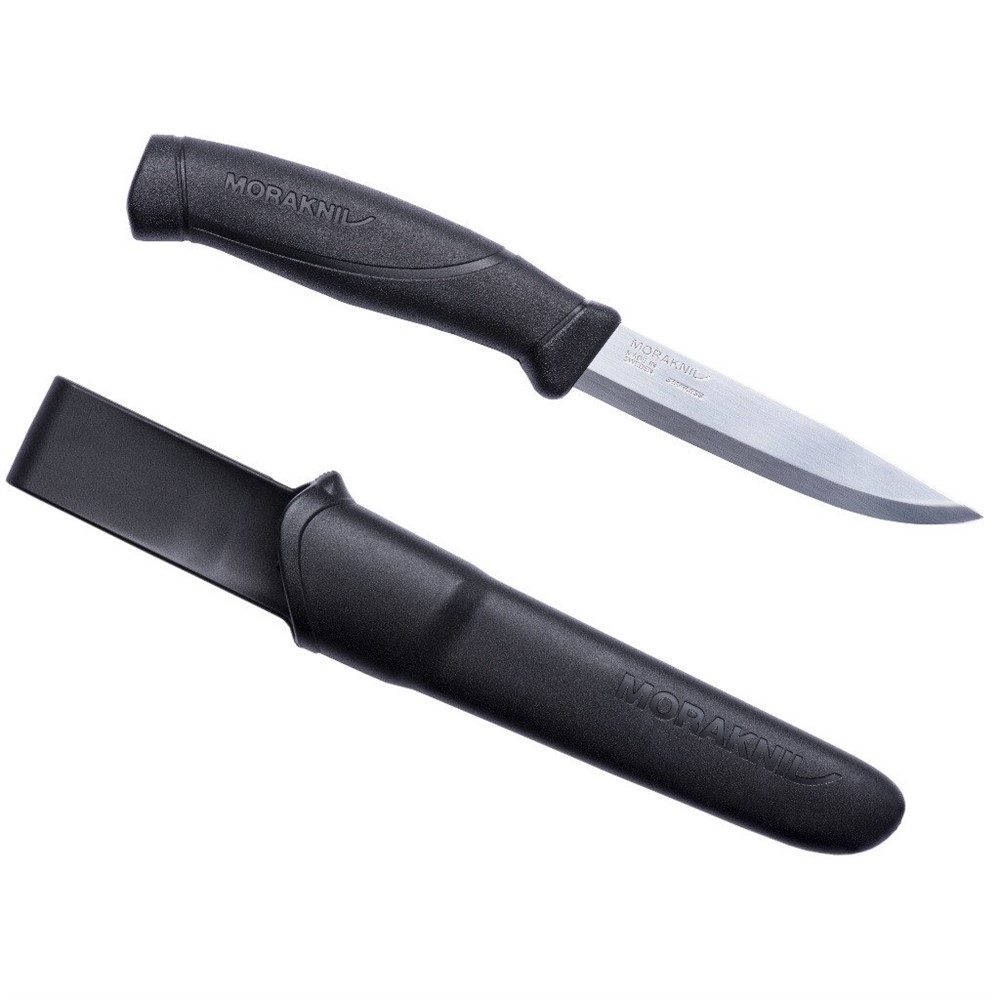 Morakniv Companion är ett kraftfullt verktyg för bushcrafters, jägare och outdoorfolk. Kniven har ett mjukt friktionsgrepp i gummi. Blad av svenskt kallvalsat rostfritt stål. Knivslida av plast med bältesclips.