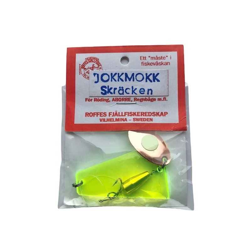 Roffes Jokkmokkskräcken är ett riktigt unikt blänke. det består av plexiglasskiva, liten kopparsked med fluotejp och sedan en mässingkropp som tyngd. Blänket får en mycket unik rörelse i vattnet som attraherar fisken. Blänkets totala längd är ca. 100 mm.