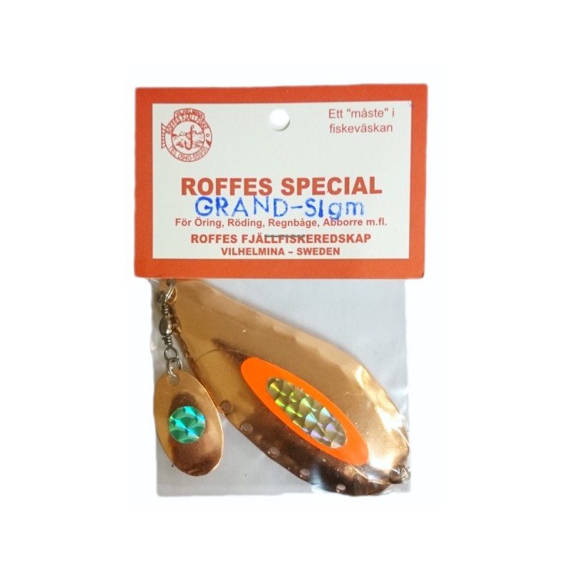 Ett utmärkt blänke för ditt isfiske från populära Roffes Fjällfiskeredskap i Vilhelmina. Blänket har en liten sked vid ovansidan som slår i den stora skeden.