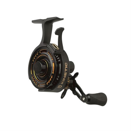 En riktigt häftig pimpelrulle från kinetic. Frikoppla rullen med ett enkelt tryck med pekfingret och lås den igen lika enkelt.
