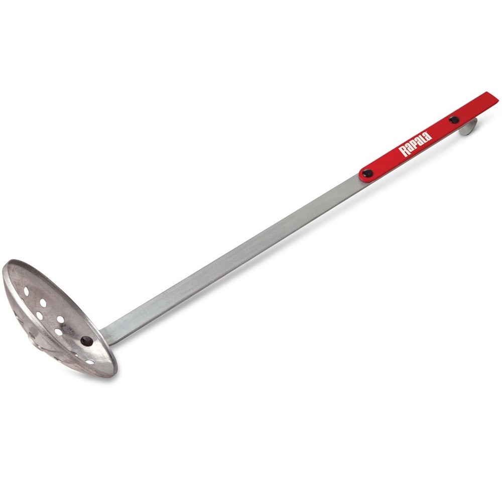 En stor isskopa i metall. Den är spetsig i ena änden så du enkelt kan hacka upp hål som frusit ihop.